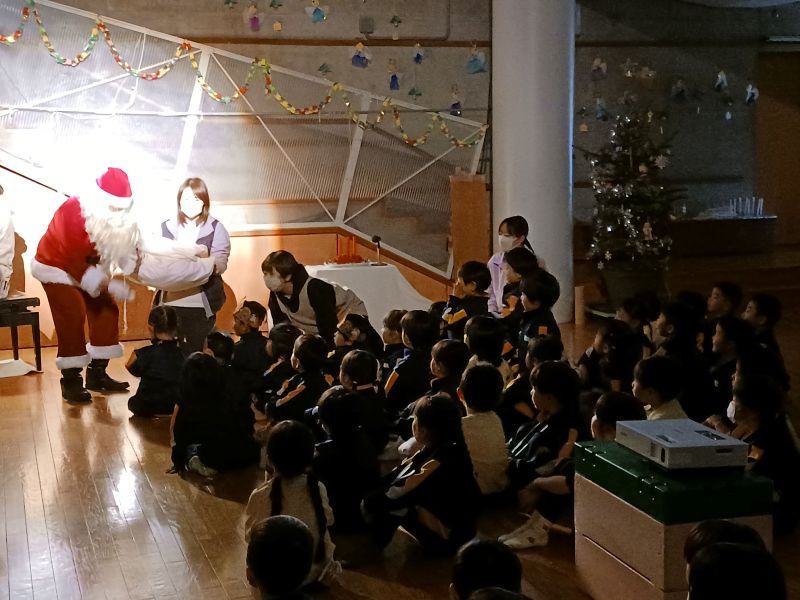 サンタさんの登場に子どもたちは大喜び。園内があたたかな笑顔で包まれました。